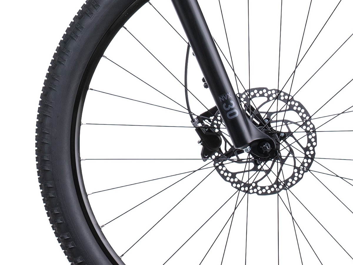 Pour l’amortissement, une fourche SR Suntour NVX30 Coil avec 100mm de débattement vous apporteront le confort nécessaire sur les bosses.