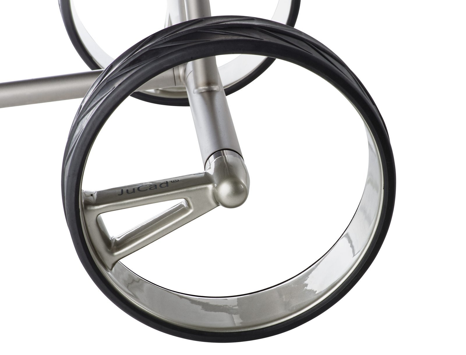 Avec ses jantes élégantes à un seul rayon, ce chariot électrique JuCad Phantom Titan 2.0 semble planer sur le fairway ! Son cadre très fin en titane, mis en relief par un monobras sur la roue avant, et ses jantes design rendent ce modèle unique.