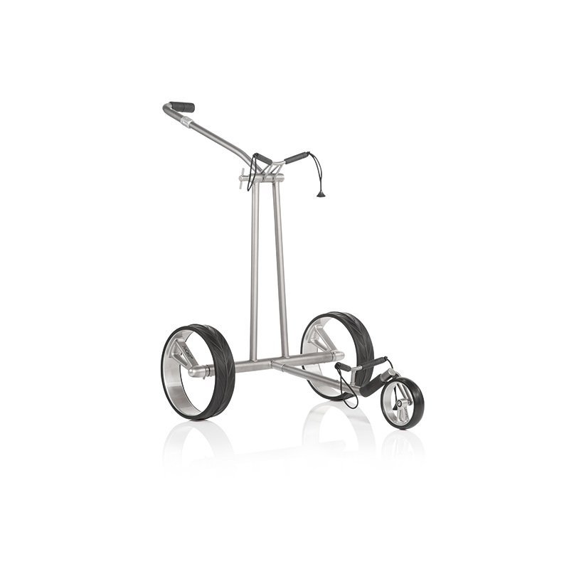 Avec ses jantes élégantes à un seul rayon, ce chariot électrique semble planer sur le fairway ! Son cadre très fin en titane, mis en relief par un monobras sur la roue avant, et ses jantes design rendent ce modèle unique.