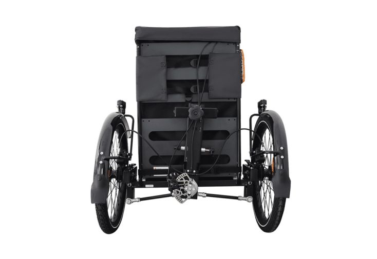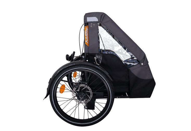 Le module Addbike+ est pensé pour être fixé sur votre vélo (16 à 29 pouces), une fois la roue avant de ce dernier retirée. Ses deux roues de 20 pouces lui permettront alors de transformer votre vélo en triporteur. Notez par ailleurs que ces roues sont équipées de freins à disque hydrauliques et de garde-boues. Elles s’inclineront dans les virages, pour une plus grande maniabilité. Le module en lui-même mesure 54 x 68 x 83 cm.