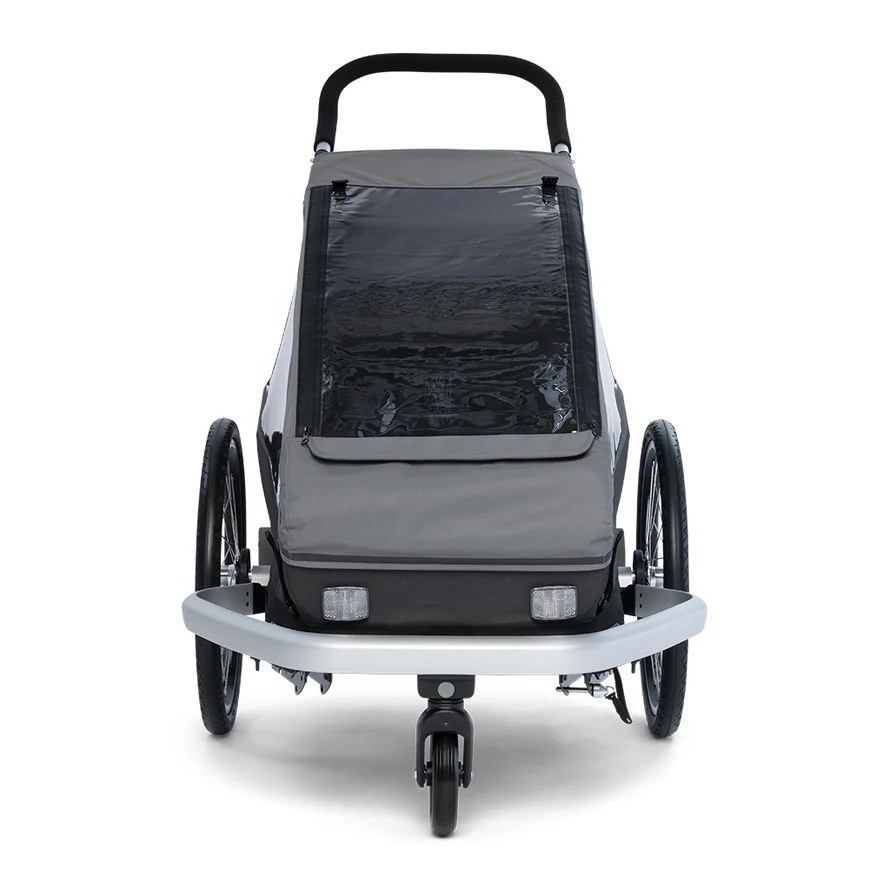 La remorque Kid Keeke 1 se distingue par son design soigné et ses multiples options d’utilisation. Grâce à ses kits de transformation inclus, elle se convertit facilement en poussette ou en remorque jogging. Ainsi, vous pouvez l’adapter à toutes vos activités, que ce soit pour une balade à vélo, une course à pied ou une promenade en ville.