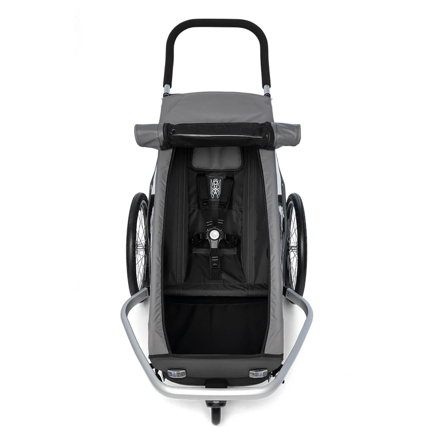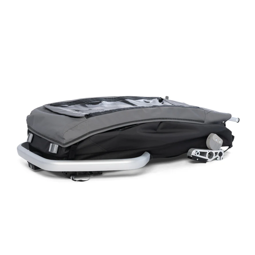 Le cadre en aluminium assure une excellente durabilité tout en restant léger. Avec un poids total de 16,9 kg, cette remorque est facile à manipuler et à transporter. De plus, l’arceau de sécurité renforcé garantit une protection optimale pour votre enfant.