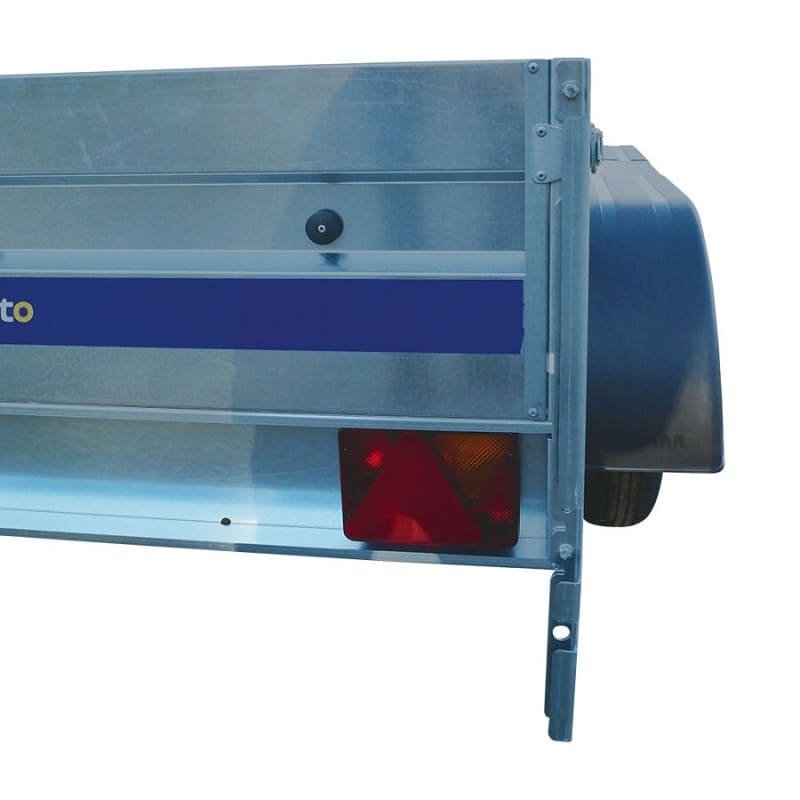La ridelle arrière amovible et rabattable permet de décharger beaucoup plus facilement le contenu de la remorque.La remorque NORAUTO est en acier galvanisé ce qui permet d’augmenter sa durée de vie et de préserver sa qualité esthétique dans le temps.