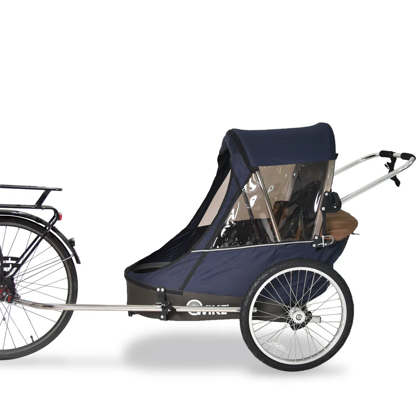 Remorque vélo 2 places 60 kg ​Wike – Premium Double – Poussette et Kit de Jogging inclus – marine/marron