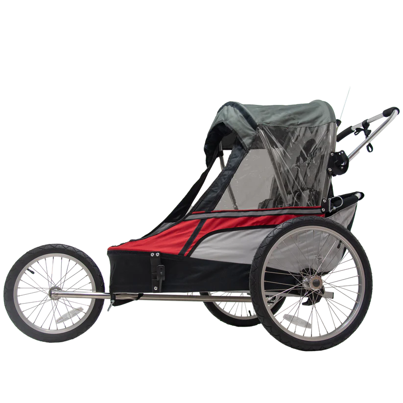 Le modèle inclut un kit de jogging et une option poussette, permettant une transition rapide entre vélo, course à pied et marche. Les couleurs marine et marron apportent un style élégant, tandis que la structure pliable facilite le rangement et le transport. Avec une charge maximale de 45,4 kg, cette remorque s’adapte aux enfants en bas âge comme aux plus grands.