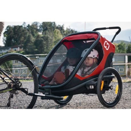 Remorque vélo et poussette pour 2 enfants à partir de 6 mois.