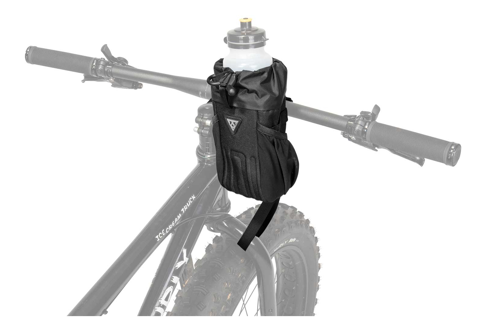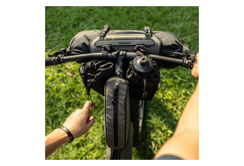 Une sacoche de guidon pratique pour ranger des barres de céréales, un téléphone, un petit appareil photo, une bouteille supplémentaire ou tout ce dont vous avez besoin à portée de main. Une poche latérale en filet supplémentaire offre plus d’espace pour les petits objets.