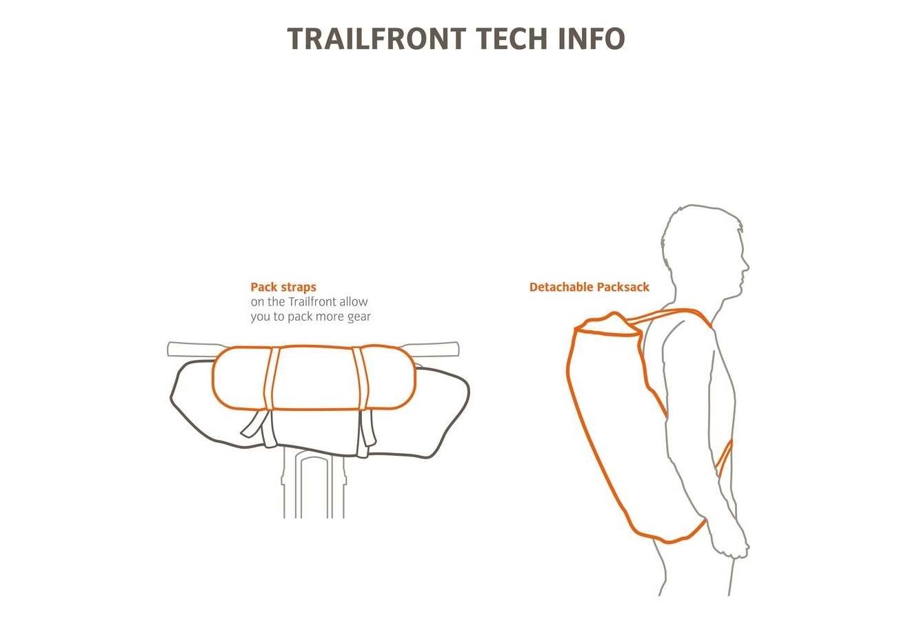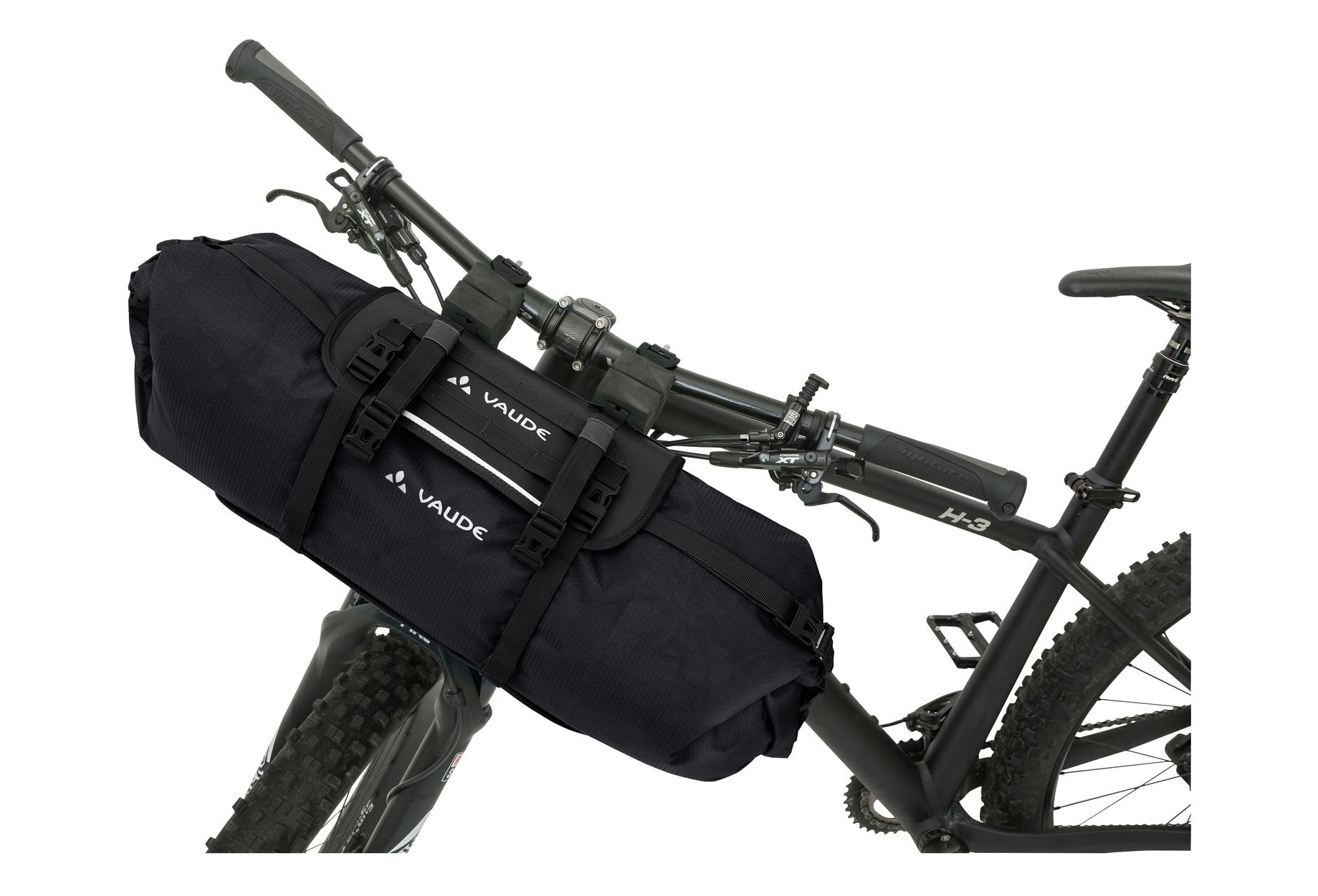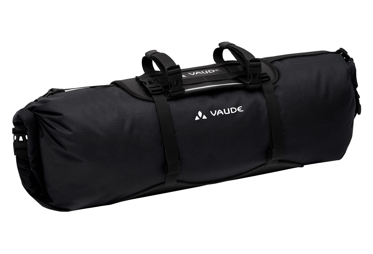 Découvrez l‘aventurier en vous ! Vous aimez dormir dans la tente et voyager à vélo avec vos amis ? Grâce à cette sacoche pour guidon aux soudures étanches, en matière sans PVC, vous et vos amis, n’aurez plus de limites. La poche accessible des deux côté et d’une contenance de 19 litres, est facile à manier et se prête pour transporter des bagages légers tels que le matelas isolant ou le sac de couchage. Autres détails pratiques : la bandoulière qui permet de porter la Trailfront facilement et simplement sur l’épaule. Des sangles de compression souples fixées au cadre assurent une tenue et une stabilité suffisante pendant qu’on roule. Des sangles supplémentaires sur le dessus permettent d’attacher d’autres bagages ou la tente à l’extérieur. Le cadre peut être fixé facilement au guidon ou au tube de direction. Grâce au dispositif de fixation ajustable en largeur et aux cales qui maintiennent une distance, vous aurez toujours suffisamment de liberté pour accéder aux freins et aux vitesses. Ce produit est imperméabilisé grâce à la finition Eco Finish, écologique et sans perfluorocarbures (PFC). Le label Green Shape de VAUDE garantit des produits fonctionnels et écologiques en matières durables.