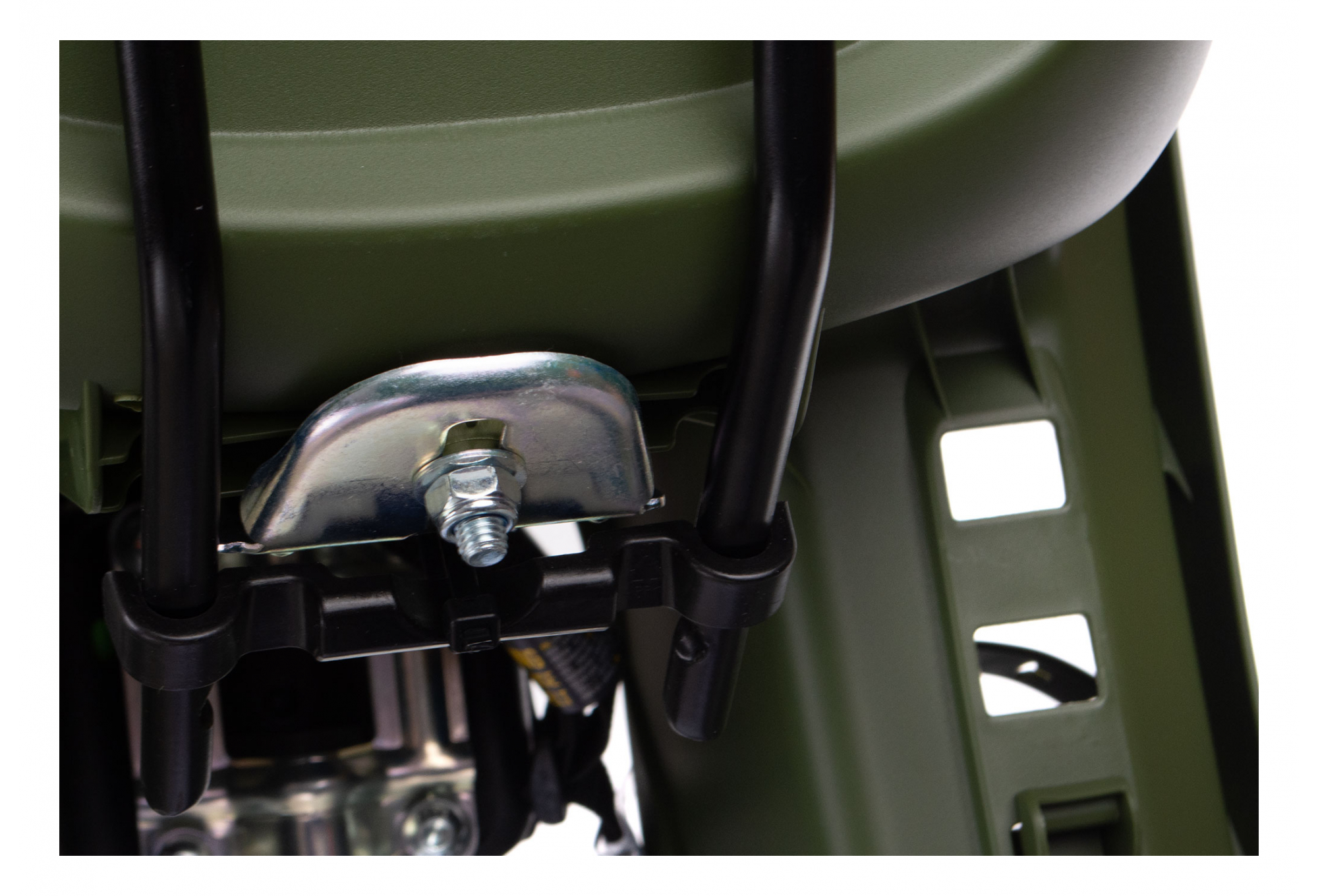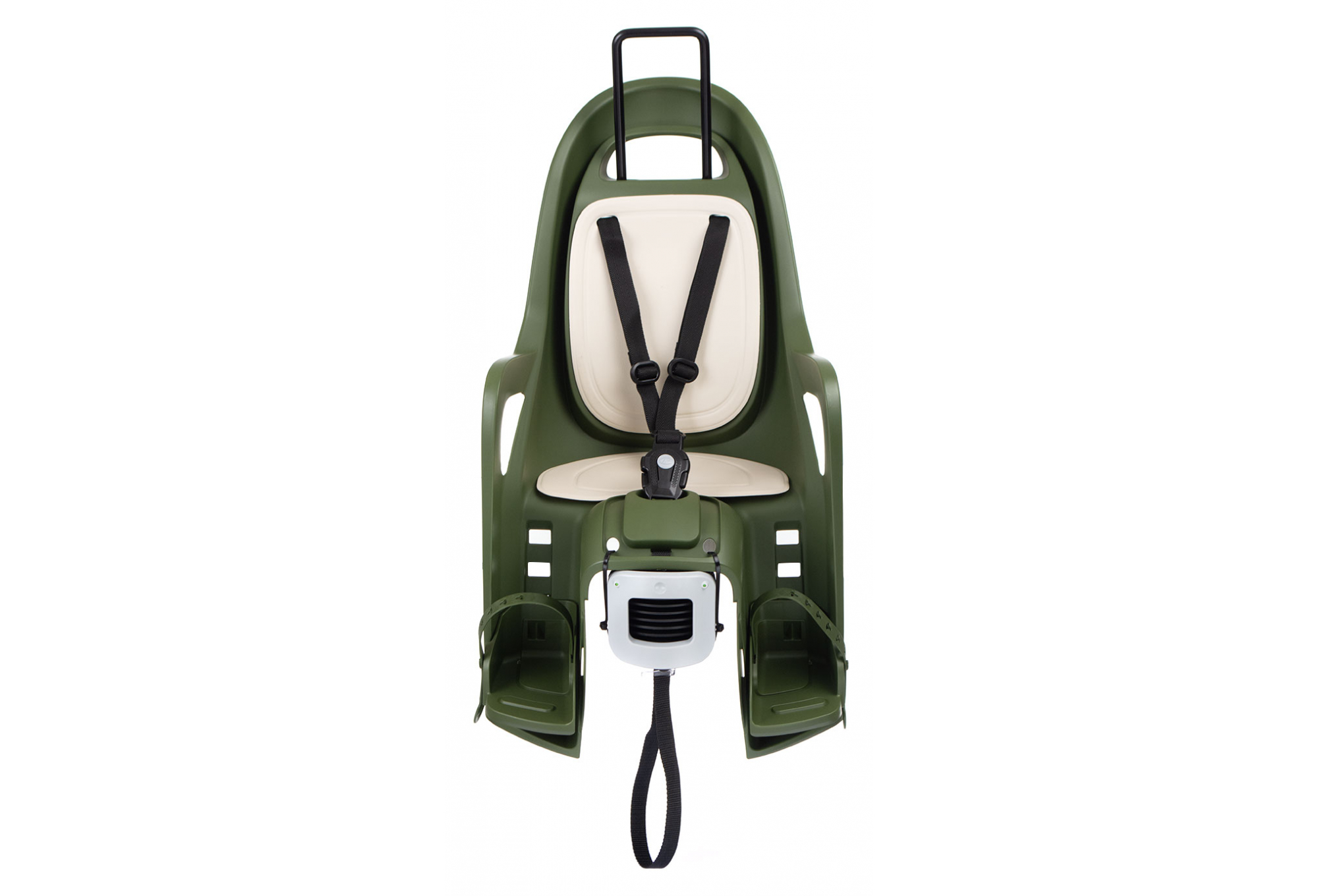 Repose-mains pour une plus grande protection et confort de l’enfant Plus grande surface de protection latérale Accompagne la croissance de votre enfant – ceinture au serrage ajustable sur 3 points Sangle de serrage avec blocage pour enfants 1 autocollant réfléchissant arrière pour augmenter la visibilité de la chaise Ceinture extra de serrage au cadre du vélo Plus grande surface de protection des pieds – évitant le contact du pied avec la roue