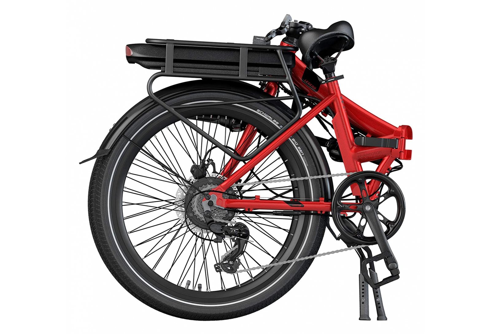 CONFORTABLE ET SÛRE Confort et sécurité extraordinaires grâce à sa selle ergonomique, son dérailleur Shimano de 7 vitesses, ses freins hydrauliques à disque Tektro qui garantissent un freinage à la fois rapide et progressif et roues de 24″ avec les pneus Schwalbe avec effet « full suspension ». Cette taille de roue intermédiaire offre une conduite très confortable en marche sans perdre la fonctionnalité d’un vélo pliant.