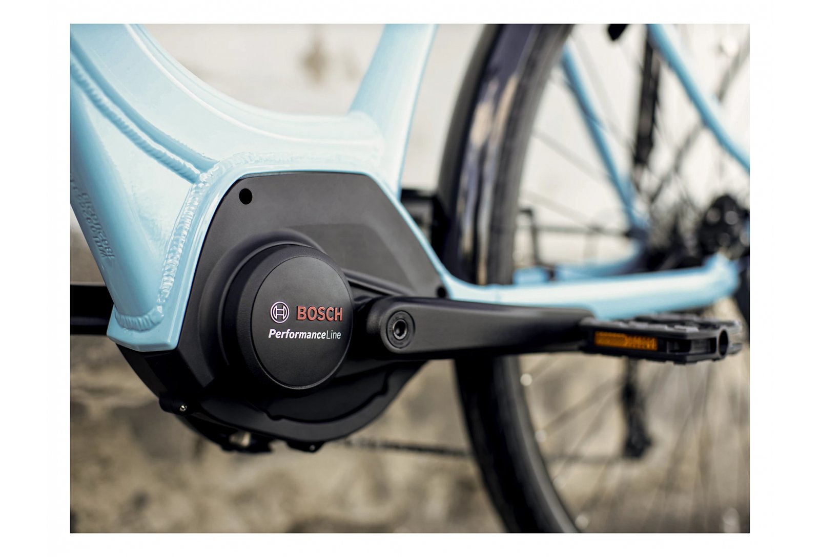Un cadre léger ouvert en Alpha Gold aluminium, un moteur Bosch Performance Line Cruise (250 W, 65 Nm) capable de maintenir une vitesse maximale de 25 km/h, un dispositif de commande Bosch Intuvia et une batterie de 500Wh. Sans oublier une transmission Shimano à 9 vitesses, une fourche télescopique et une tige de selle suspendue pour le confort, des freins à disque hydrauliques Shimano, des pneus 45C résistant aux crevaisons pour davantage de stabilité, des poignées ergonomiques, une béquille, un phare avant et un feu arrière, un porte-bagages et des garde-boue.