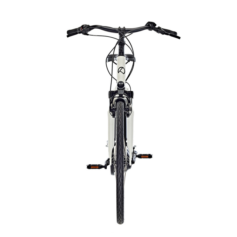 Le cadre Comfort a une géométrie ouverte : l’absence de tube horizontal facilite l’enjambement, c’est un service rendu à tous les cyclistes, hommes ou femmes. Ce cadre offre une position de conduite dos droit, qui s’affine avec la potence réglable. Sur la route, le confort est préservé au maximum, grâce au soutien appréciable de la fourche télescopique et de la tige de selle à suspension.
