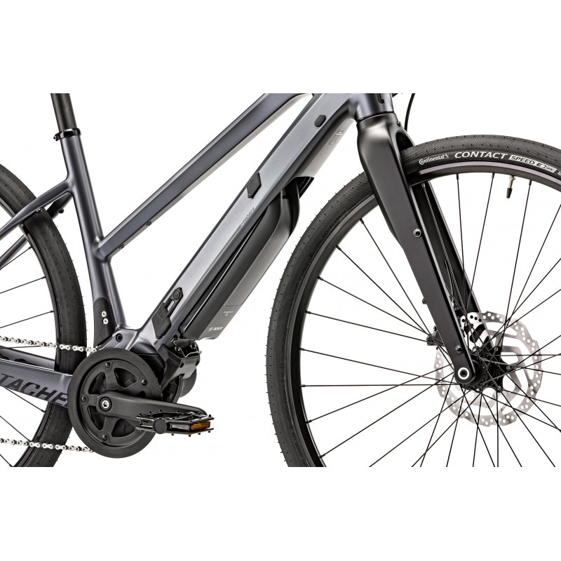 Ce cadre présente un tout nouveau design, avec un système d’intégration de la batterie complètement revu : il utilise toujours la technologie Hidden Power, mais la PowerTube de Bosch s’insère et se retire désormais par le bas du tube diagonal, ce qui a pour conséquence d’abaisser le centre de gravité de bike, d’améliorer son équilibre et son agilité dans les trajectoires. La fourche en carbone est doté d’un pivot conique, et les roues sont au format 28 pouces pour une maniabilité accrue.