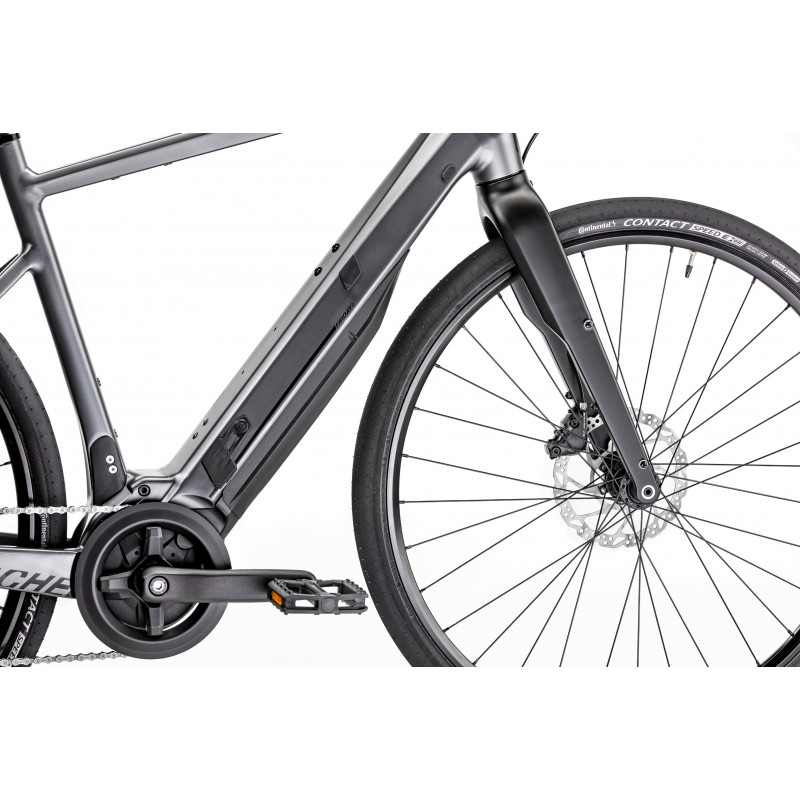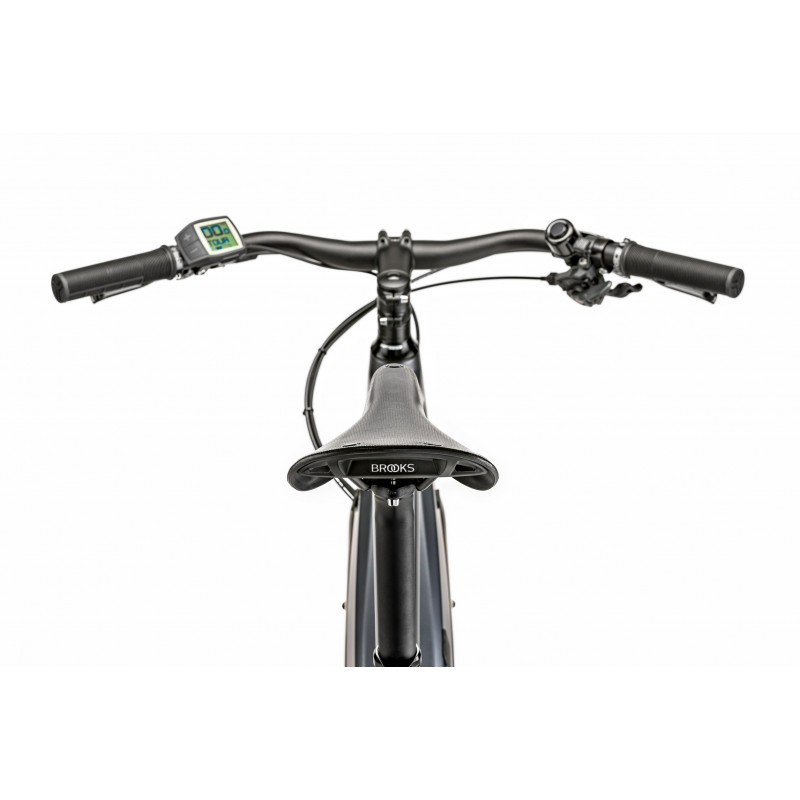 Enfin, on trouve des périphériques et accessoires de qualité sur ce VAE Friday 28.1, assurant confort et dynamisme : un dérailleur Shimano Tiagra à 10 vitesses, de puissants freins à disque hydrauliques Shimano UR300, une selle Brooks Cambium et de rapides pneus Continental Speed Contact, avec une section de 42 qui préserve le confort sur la route.