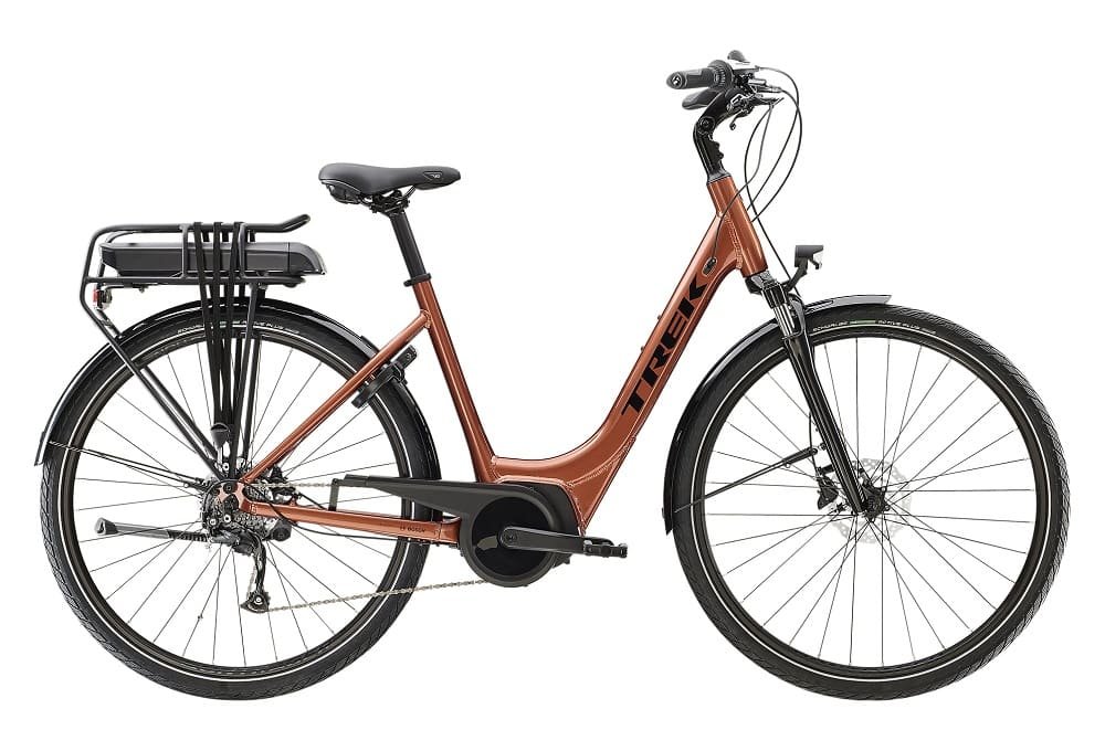 Vélo de Ville Électrique Trek Verve+ 1 Lowstep Shimano Tourney/Altus 8V 300 Wh Orange Foncé 2023