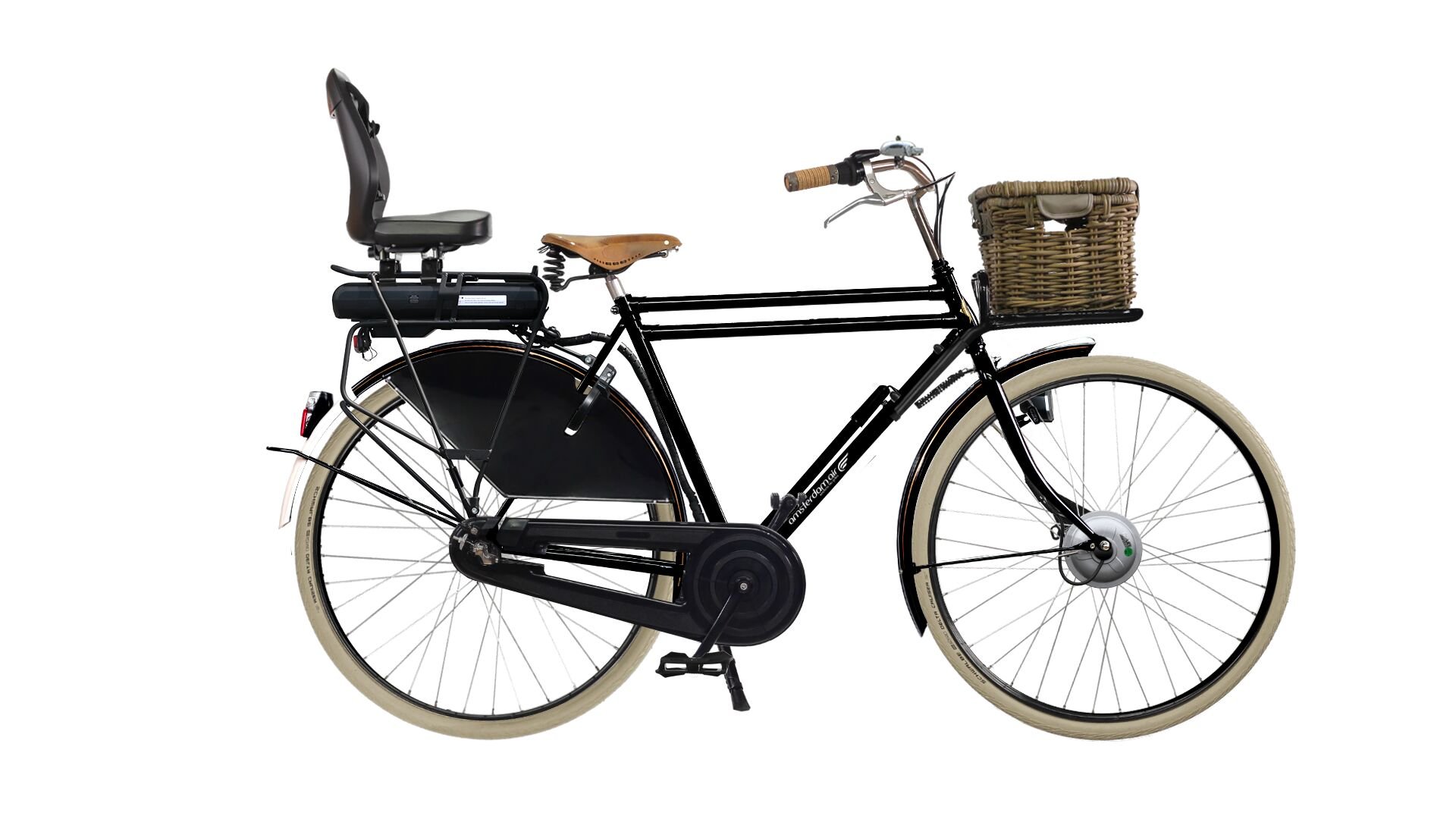 Pour transporter des enfants, le vélo peut être équipé d’un siège avant, d’une selle sur cadre ou d’une béquille double extra-large. Il est équipé d’origine de protège-rayons pour éviter qu’un enfant ne se prenne les pieds dans la roue arrière.